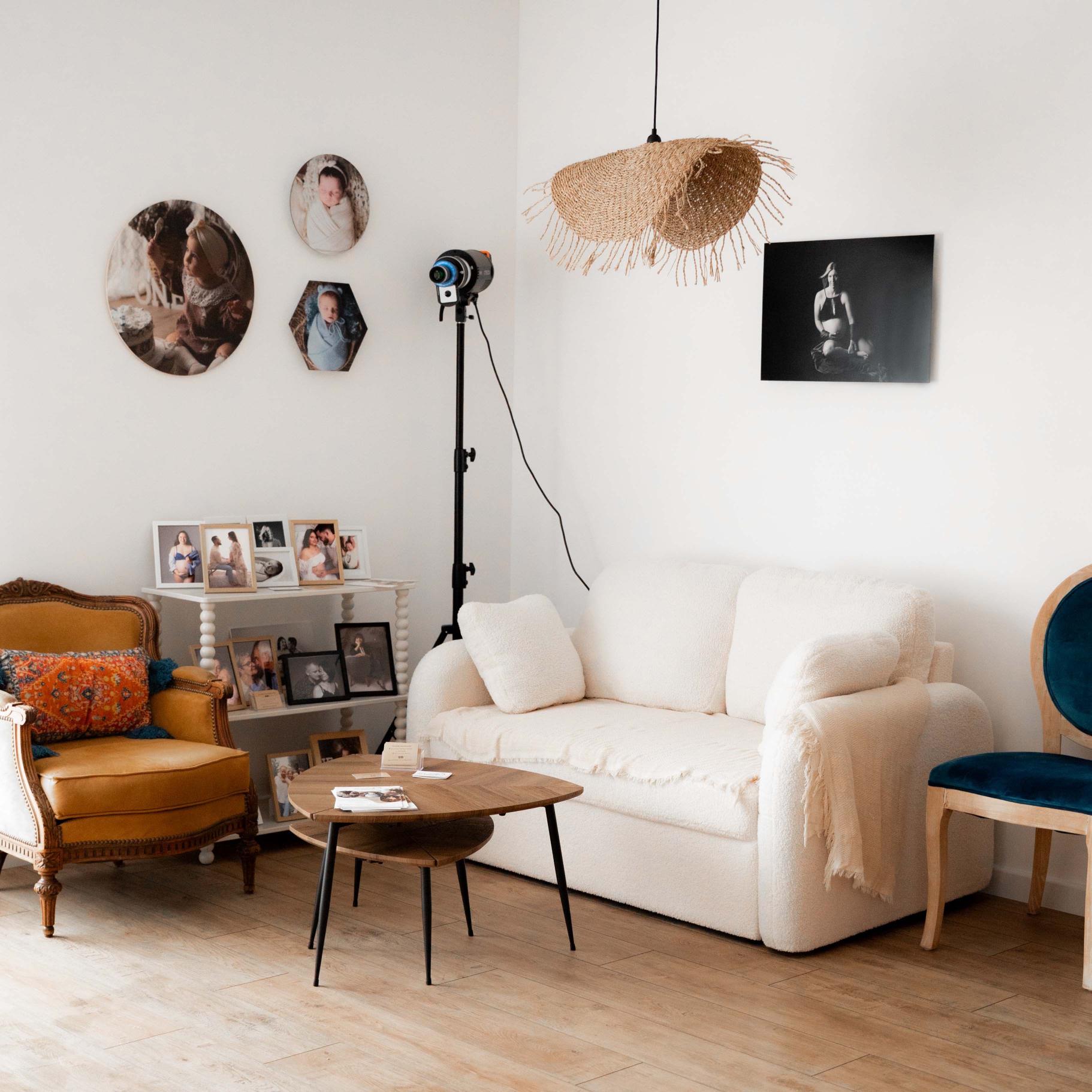 Bienvenue dans mon nouveau studio, pensé pour vous offrir une véritable bulle de douceur. Couleurs naturelles, coin salon-détente, ambiance cosy… Tout est réuni pour que vous vous sentiez comme à la maison.
